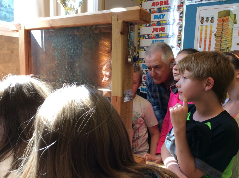 This program is available to schools who are interested in having a live observation hive installed for a full year to love and tend. It includes the installation (minus the cost of plexiglass window insert) of a 2-3 frame observation honey bee hive, an hour-long teacher tutorial on hive care and maintenance and a one hour-long interactive in-class presentation for students.